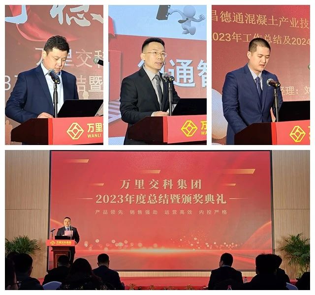 集團(tuán)執(zhí)行總裁兼萬里交科股份董事長李丹、德通科技股份總經(jīng)理孟超、德通混凝土產(chǎn)業(yè)技術(shù)研究院有限公司總經(jīng)理劉其昂分別代表集團(tuán)三大業(yè)務(wù)版塊作《2023年度工作總結(jié)和2024年度工作規(guī)劃》報告,集團(tuán)副總裁張培主持會議。