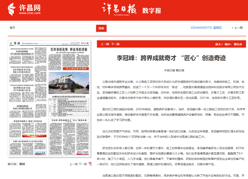 “中原大工匠”稱號獲得者,許昌德通振動(dòng)攪拌科技股份有限公司技術(shù)總監(jiān)李冠峰