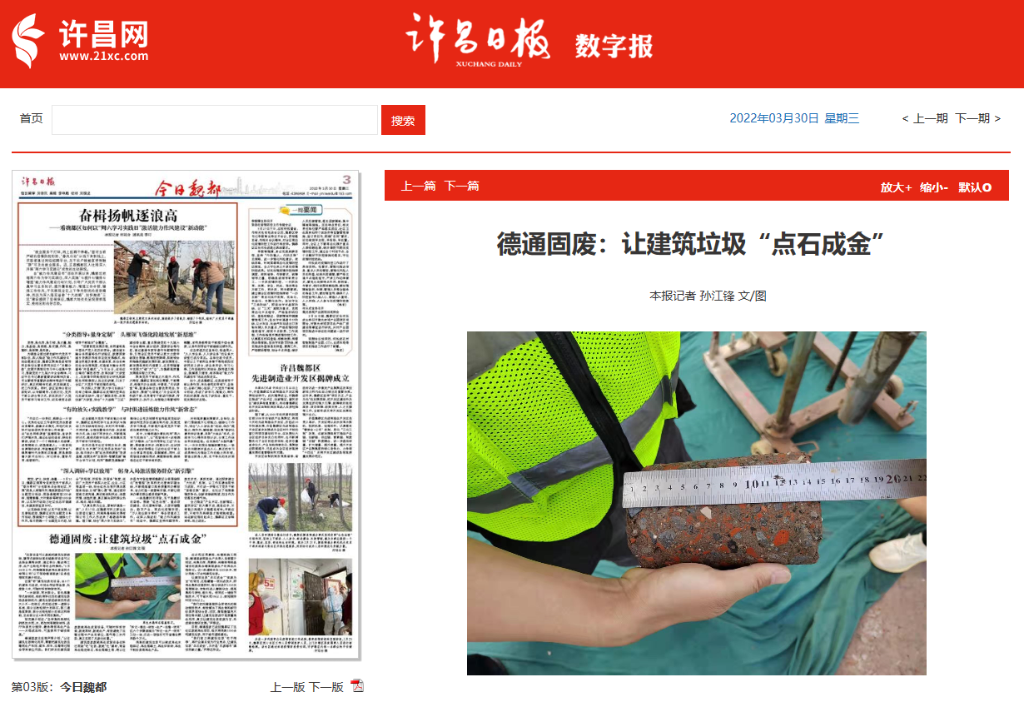 “這套設(shè)備可以就地把建筑垃圾破碎,履帶式破碎站里的磁懸浮設(shè)備可以去除金屬等雜質(zhì),通過篩分、輸送等工序